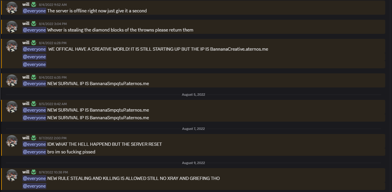 This is the official Banana SMP files, showing the history of banana smp over the years.